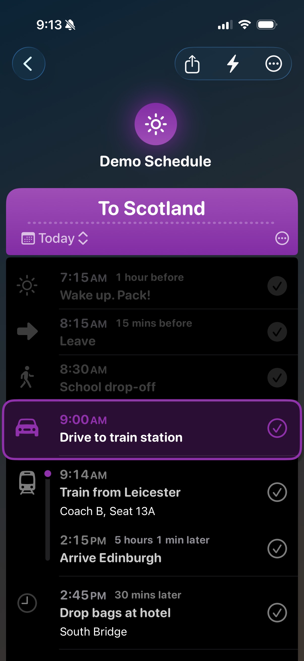 - iCloud sharing: Sync with iCloud and share a link to collaborate on the same schedule - handy for trips with friends or family plans.